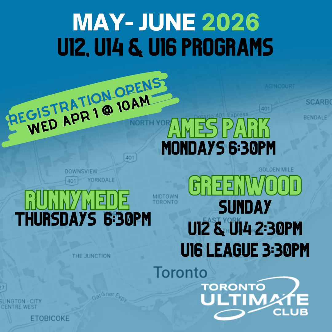 2026 Summer U19 Leagues registration opens April 1st. Our U19 leagues run from mid-May through to the last week of August. Details (location and times) are now available on our Juniors Upcoming Programming Page. Registration links will be available for viewing on Friday, March 27th!