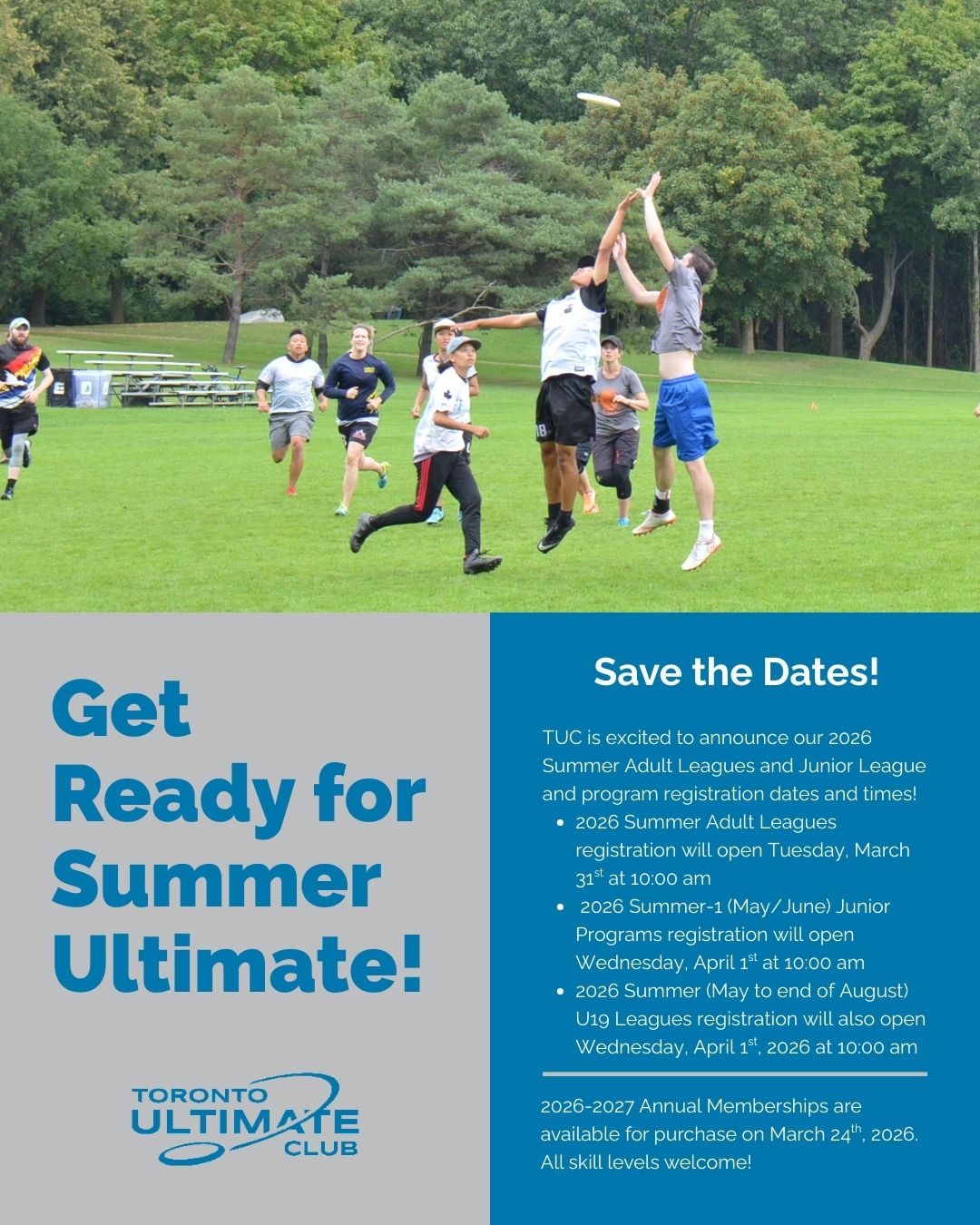 Mark your calendars and don't miss out on another exciting summer of ultimate!