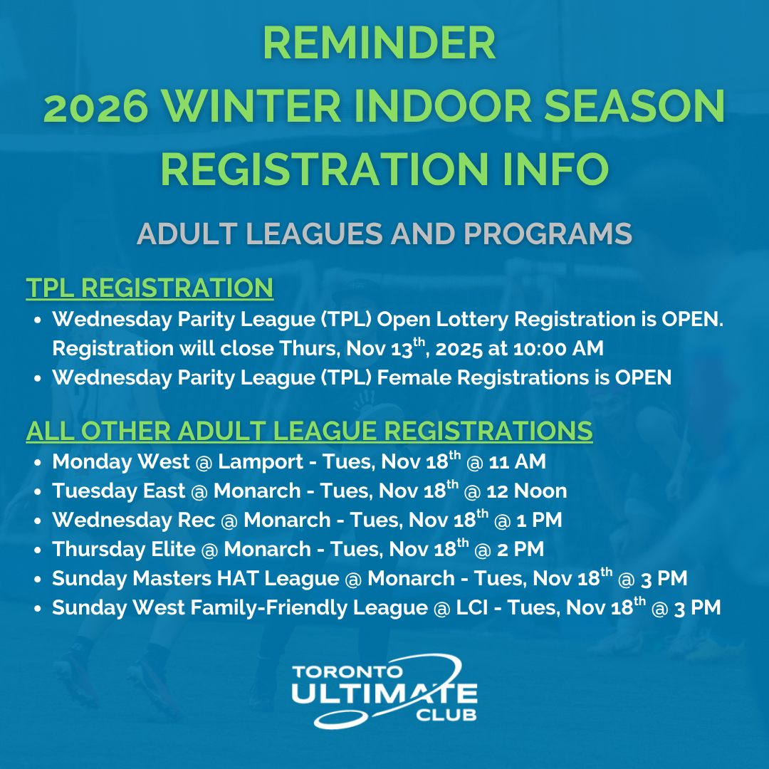 Mark your calendars for these key registration dates for both our Adult Leagues and our Junior Programs as provided below!