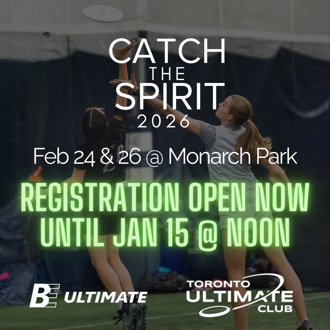TUC and BE Ultimate are pleased to announce that the 19th annual Catch the Spirit Indoor High School Tournament will take place at Monarch Park Stadium, welcoming 32 high school programs across two separate tournament days. Catch the Spirit remains a highlight of the indoor calendar, celebrating the values that make our sport unique.