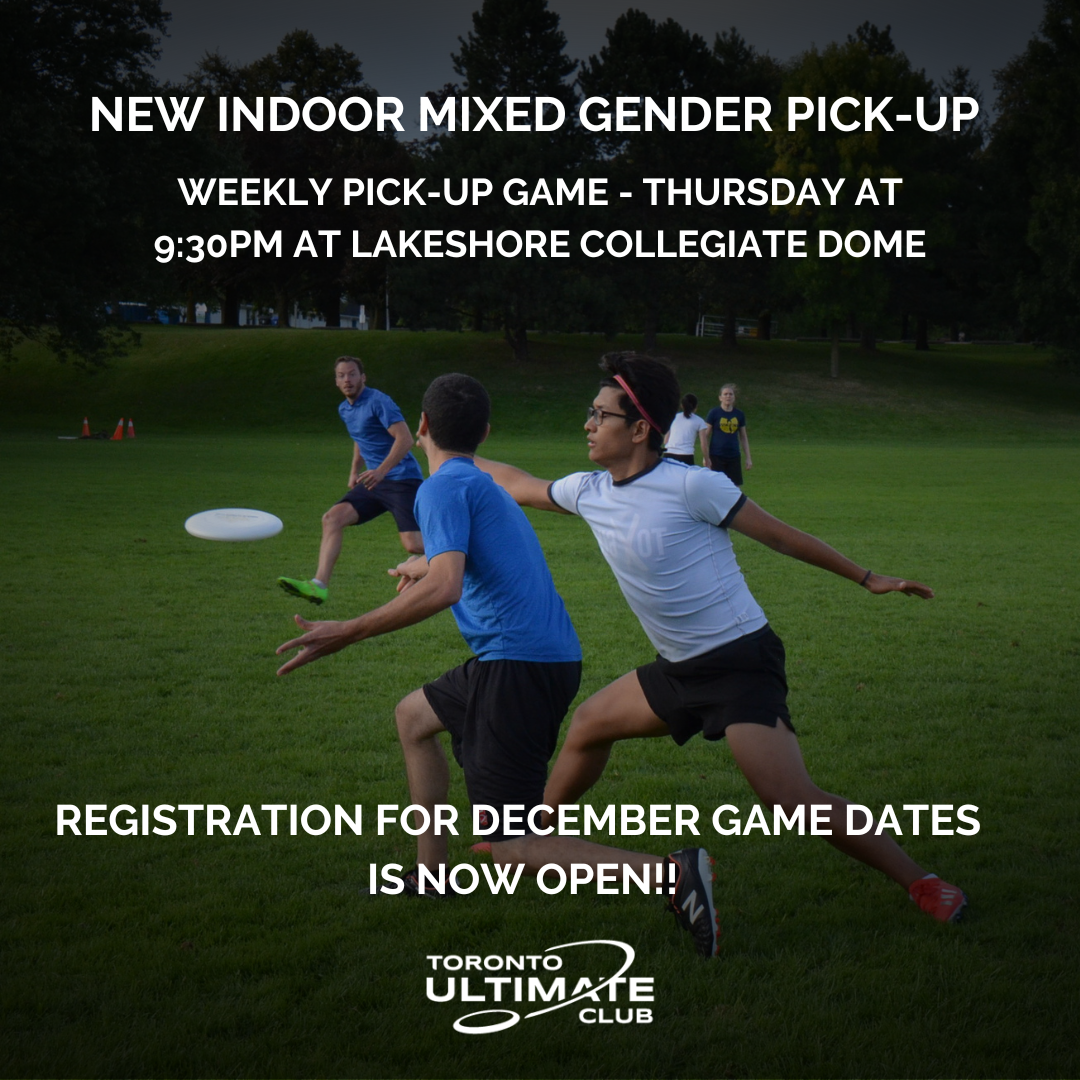 Looking to keep playing as the nights get colder? Thursday Night Pick-Up at Lakeshore Collegiate Dome (LCI) continues through December, and registration is now open for all December game dates.
